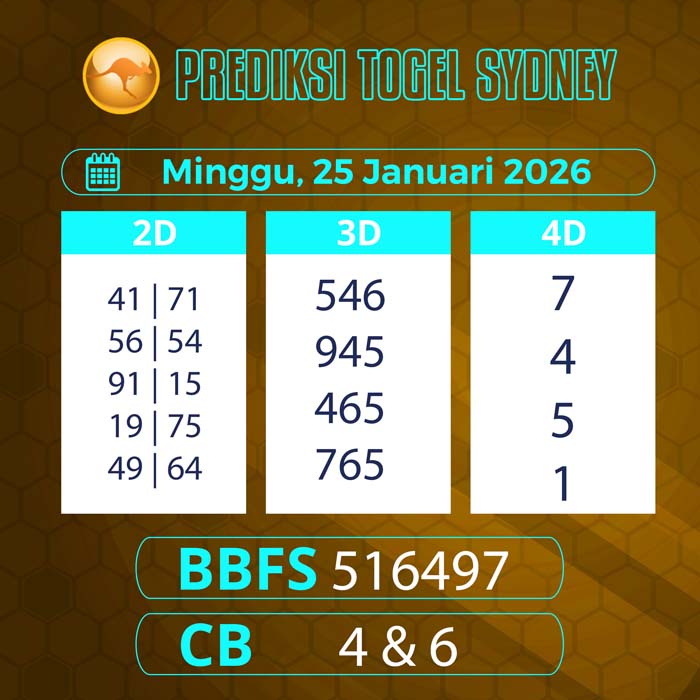 PREDIKSI TOGEL SYDNEY TERBARU MINGGU 25 JANUARI 2026 – Selamat datang untuk semua sobat tercinta di situs terbaik yang akan membantu sobat dalam memberikan angka main sydney hari ini.