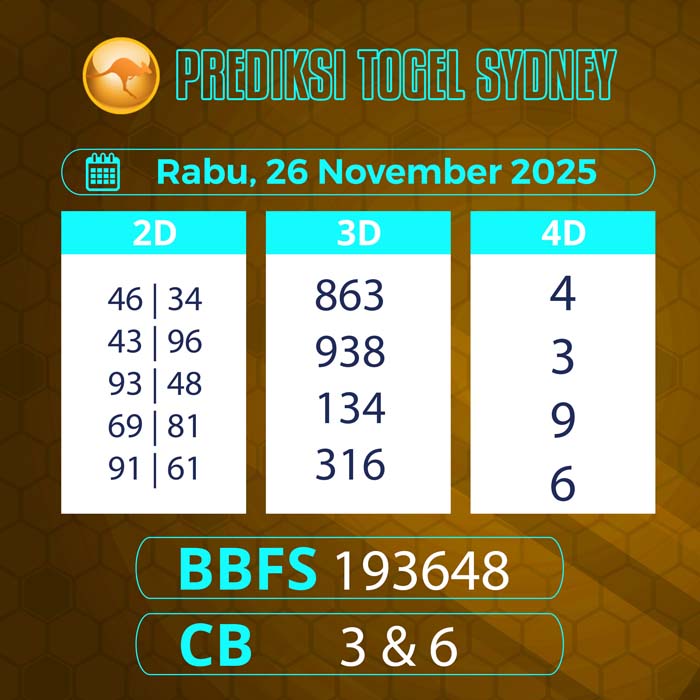 PREDIKSI TOGEL SYDNEY TERBARU RABU 26 NOVEMBER 2025 – Selamat datang untuk semua sobat tercinta di situs terbaik yang akan membantu sobat dalam memberikan angka main sydney hari ini.