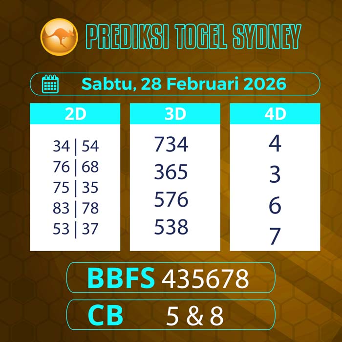 PREDIKSI TOGEL SYDNEY TERBARU SABTU 28 FEBRUARI 2026 – Selamat datang untuk semua sobat tercinta di situs terbaik yang akan membantu sobat dalam memberikan angka main sydney hari ini.