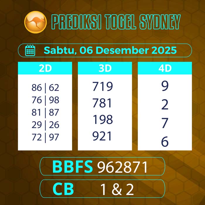 PREDIKSI TOGEL SYDNEY TERBARU SABTU 6 DESEMBER 2026 – Selamat datang untuk semua sobat tercinta di situs terbaik yang akan membantu sobat dalam memberikan angka main sydney hari ini.