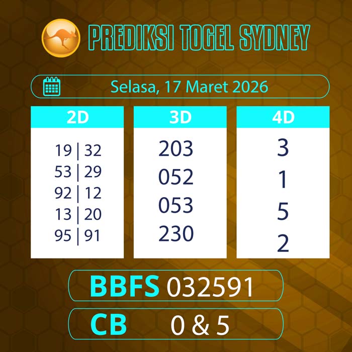 PREDIKSI TOGEL SYDNEY TERBARU SELASA 17 MARET 2026 – Selamat datang untuk semua sobat tercinta di situs terbaik yang akan membantu sobat dalam memberikan angka main sydney hari ini.