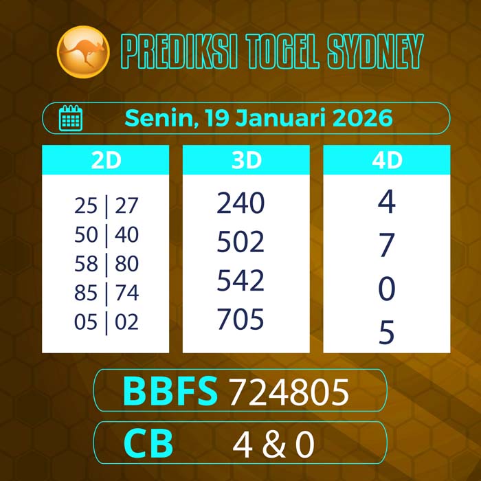 PREDIKSI TOGEL SYDNEY TERBARU SENIN 19 JANUARI 2026 – Selamat datang untuk semua sobat tercinta di situs terbaik yang akan membantu sobat dalam memberikan angka main sydney hari ini.