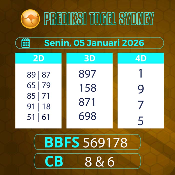 PREDIKSI TOGEL SYDNEY TERBARU SENIN 5 JANUARI 2026 – Selamat datang untuk semua sobat tercinta di situs terbaik yang akan membantu sobat dalam memberikan angka main sydney hari ini.